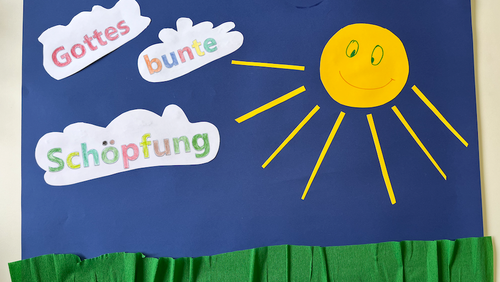 Gott sagt: "Es ist gut." und die Kinder finden es klasse! Sie singen zusammen. Sie bauen ihren eigenen Schöpfungsraum in einem Schuhkarton nach. Es wird hell und das Leben entsteht.